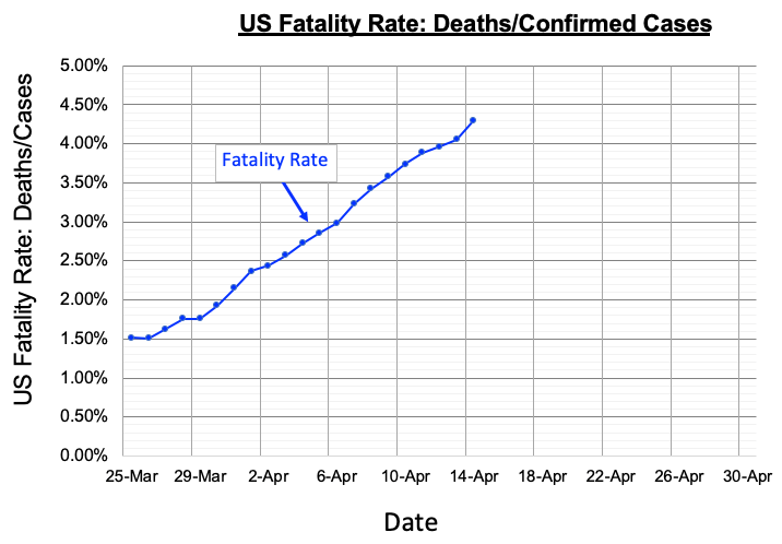 Current Covid19 Fatality Rate (from latest value of curve) = ~4.1%